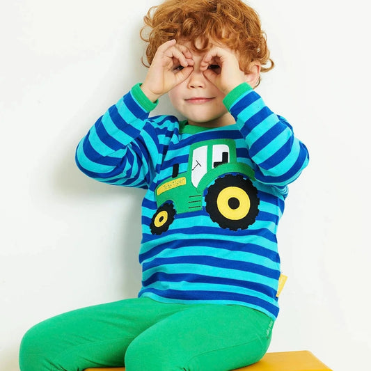 Toby Tiger Long Sleeve Blue/Green Striped Tractor Top