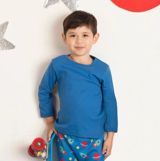 Toby Tiger Long Sleeve Top, Blue Farm