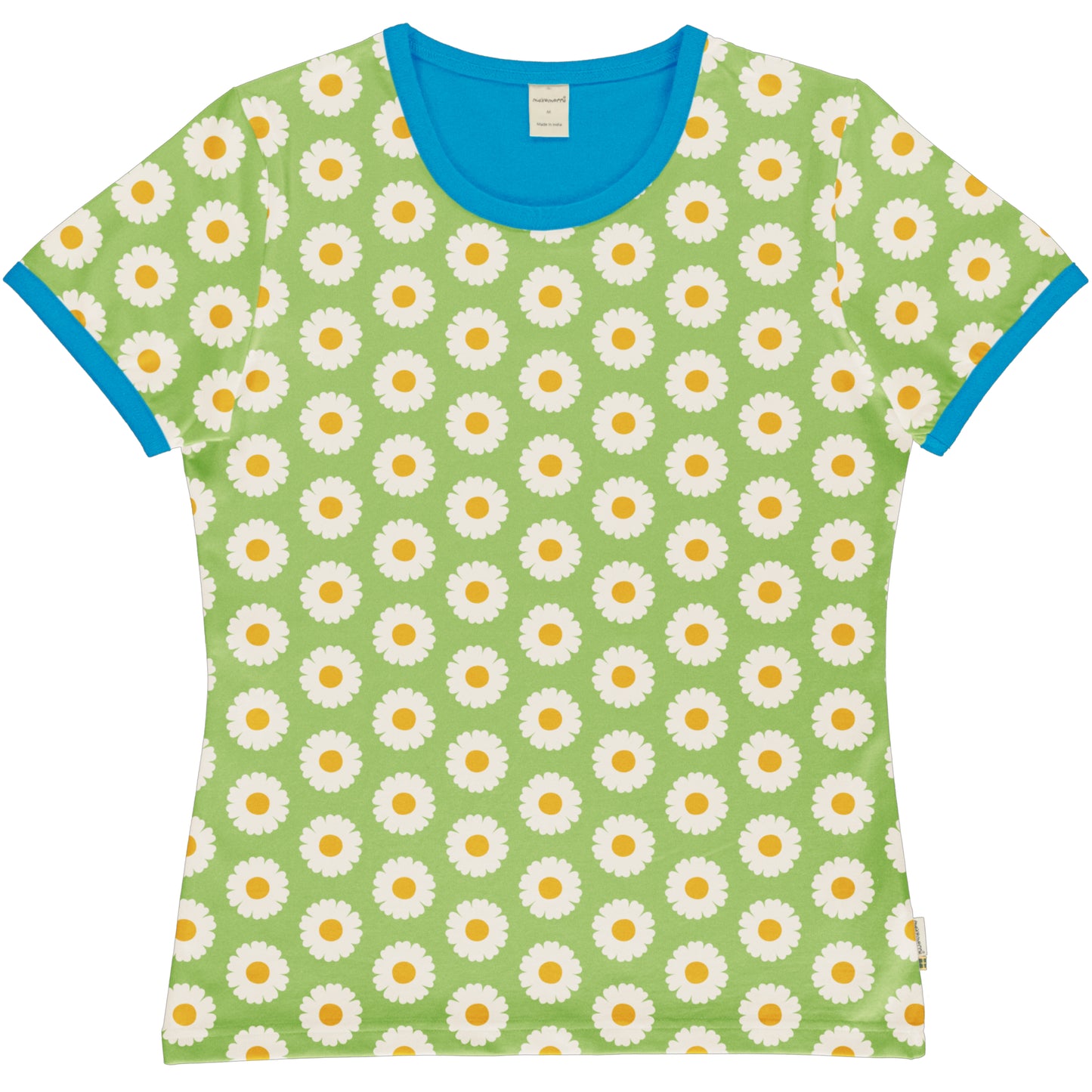 Adult fitted short-sleeved top with accentuated waist in soft cotton jersey with ribbed binding at sleeves and neck.