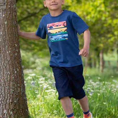 Step back in time with this dinosaur-themed t-shirt, featuring a vibrant print of the Triassic, Jurassic, and Cretaceous periods. Perfect for budding palaeontologists, it’s a fun and educational addition to any little explorer’s wardrobe. Pair it with our denim shorts for a cool and comfy spring look. Crafted from 100% organic cotton for a soft, planet-friendly feel.