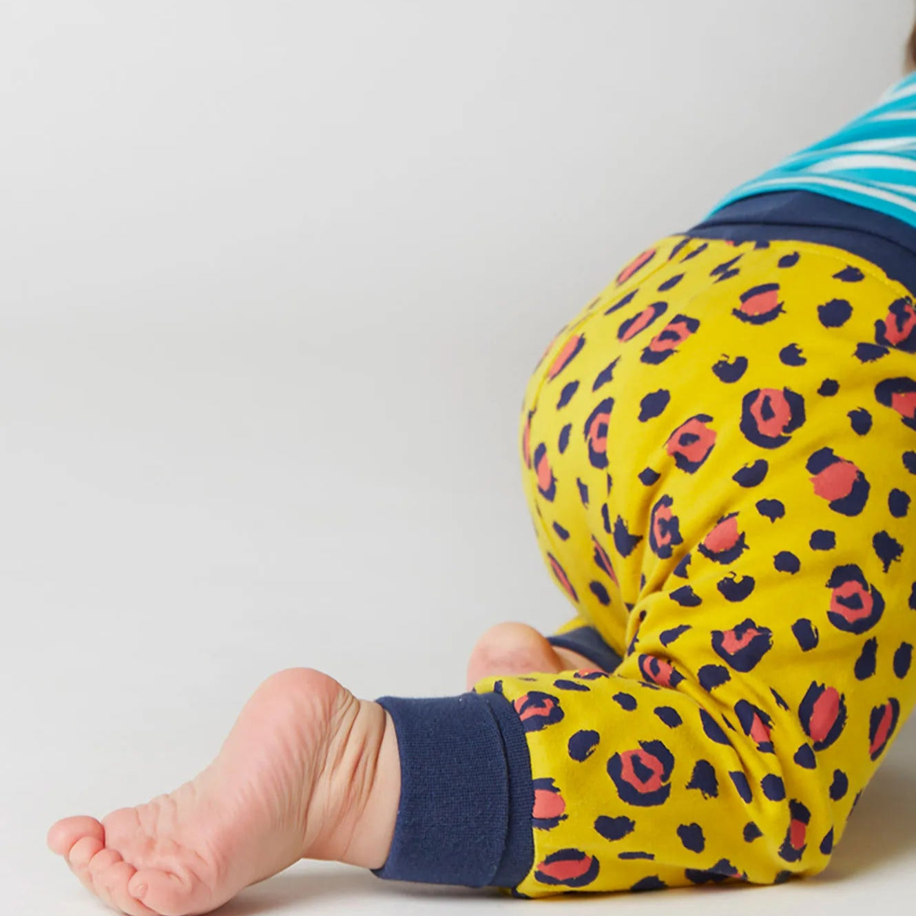 ✔ Main Fabric: 100% Organic Cotton Interlock ✔ Waistband & Cuffs: 95% Organic Cotton Rib, 5% Elastane for stretch ✔ Super soft, cosy, and gentle on sensitive skin ✔ Fun & playful Frugi designs ✔ Grow-with-them fit! Extendable waistband & cuffs for longer wear ✔ Sizes up to 3 years: Designed to comfortably fit over cloth nappies