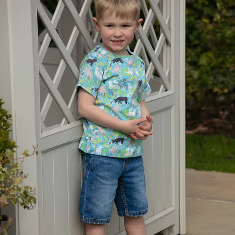 The Piccalilly Country Friends Short Sleeved T-Shirt is a charming and practical wardrobe essential for little ones. Featuring a delightful all-over farm animal print inspired by the countryside, it brings a fun and playful touch to everyday outfits.