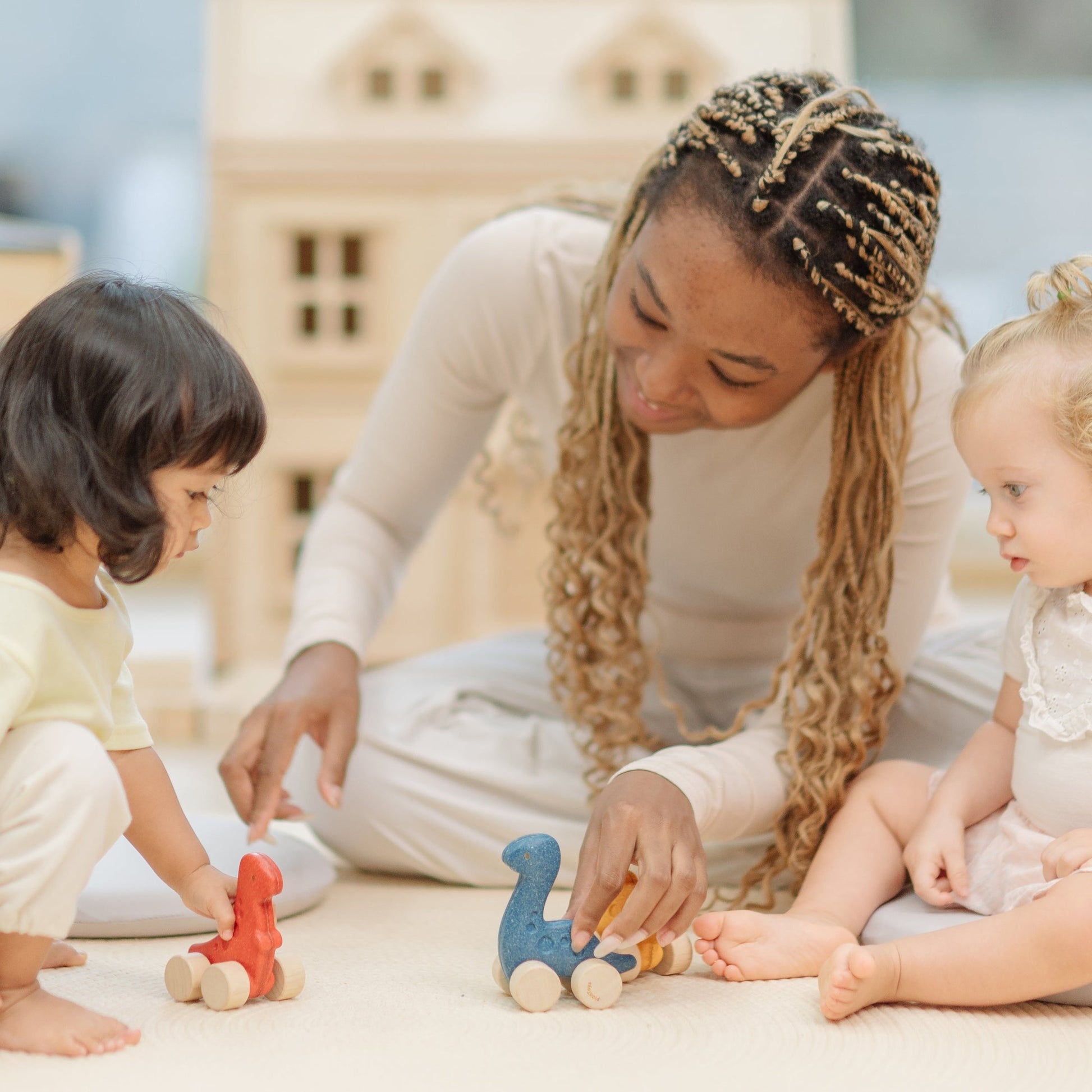 These cute dinosaur baby cars fit into little hands perfectly. Your baby will enjoy rolling it around and watching them move up and down when pushed.