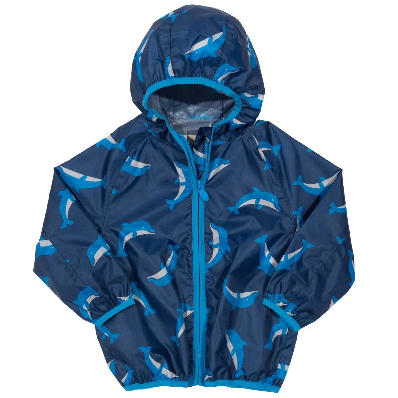 Dance in the drizzle with dolphins! This super practical and fabulous looking jacket is waterproof, windproof and lightweight. It even packs away into itself. Made from 100% recycled materials this eco-friendly puddlepack coat offers great rain and water protection, just the thing for the unpredictable British weather!