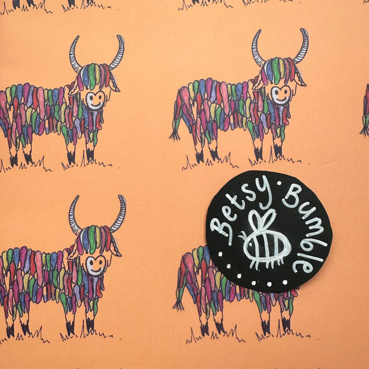 Recycled Single Sided Wrapping Paper, 700 x 500mm, Rainbow Highland Cow