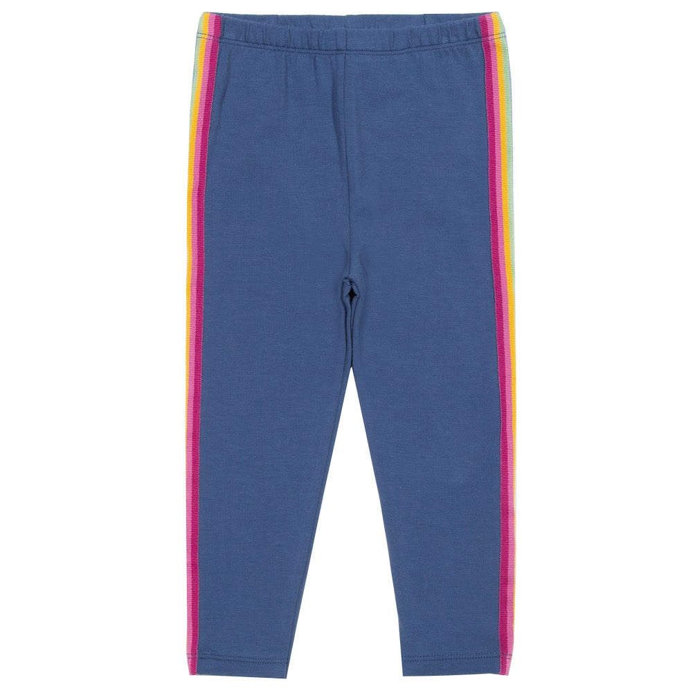 Our great little leggings feature rainbow striped taping on the sides for a splash of colour. These navy blue leggings are a must-have for this season, designed to go perfectly with so many of our latest tops. Made from our hard-wearing organic cotton jersey with a little bit of stretch for extra comfort and a fabulous fit. Our leggings also come with a nappy panel at the seat up to and including age 3 to ensure a great fit with all nappies, including cloth.